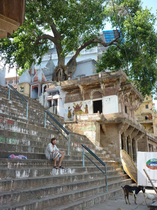 The next day it was gorgeous clear weather again and so we made our way down to the Ghats, vaguely heading to the Hannuman Mandir (Temple), satisfied that our business deal is done and now is time to relax. We sit on Assi Ghat, a truly tranquil place, Sadhus and sellers who are sluggish due to the heat and now give us far less hassle with appropriate responses in Hindi.