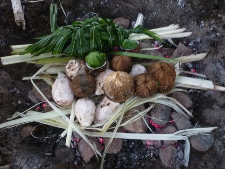 Before we knew it, our time was coming to an end in Qamea. Gella and Joe were so kind and insisted on staying an extra day so they could make us the traditional Fijian food, Lovo, and have a final goodbye party. Lovo is when the food is buried under ground with hot coals and covered with big leaves. The food tastes smokey and truly wonderful. Fish and tarro (a staple root vegetable) are the most common to be cooked.