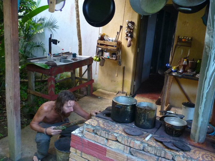 We discussed the farm with Bruno who had been away trying to secure the capital to continue. In the 1980´s a disease called "bruja" or witch´s finger hit the caucau farms. This devastated the industry. The Brazilian givernment gave loans to pay for a "cure" that never worked, but the debt remained. Bruno bought the farm with a large 250,000 Rs (100,000 pound) debt, fought off the debt due to being unfair since the cure never worked, but recently lost. He spent 6 months raising funds to keep the farm going, save the 4 workers and their families livilyhood and a large amount of Mata Altlantica jungle. He came back mentally drained as the deadline for the first large payment was due at the end of the year. Financial reality always exists it seems even when self-sufficiency is the goal away from the cash economy. The guys were working on a new eco community model bound together with mutual input and respect for each person and the land they live on. For us it was working, at least on a temporary basis. The trouble with a debt though is that it needs paying and so some kind of revenue generation is required. How do you achieve that sensitively without affecting the balance of community? Laura and I were not paying and yet Alesha was. Some paid more and some paid less, but was this fair as we were all working equally. The question was can you charge for volunteering? Other ideas were to build and rent out eco lodges, or to run farm work shops where people, like us, learnt agro-forestry and permiculture skills.