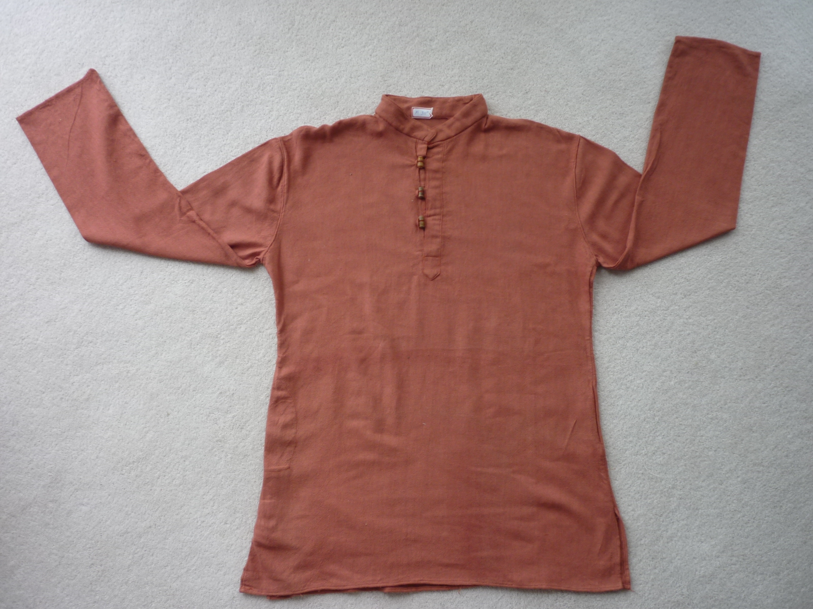 Indian Khadi shirts in a dark burnt orange colour. Available in small (28") medium (30") and large (32") chest sizes.