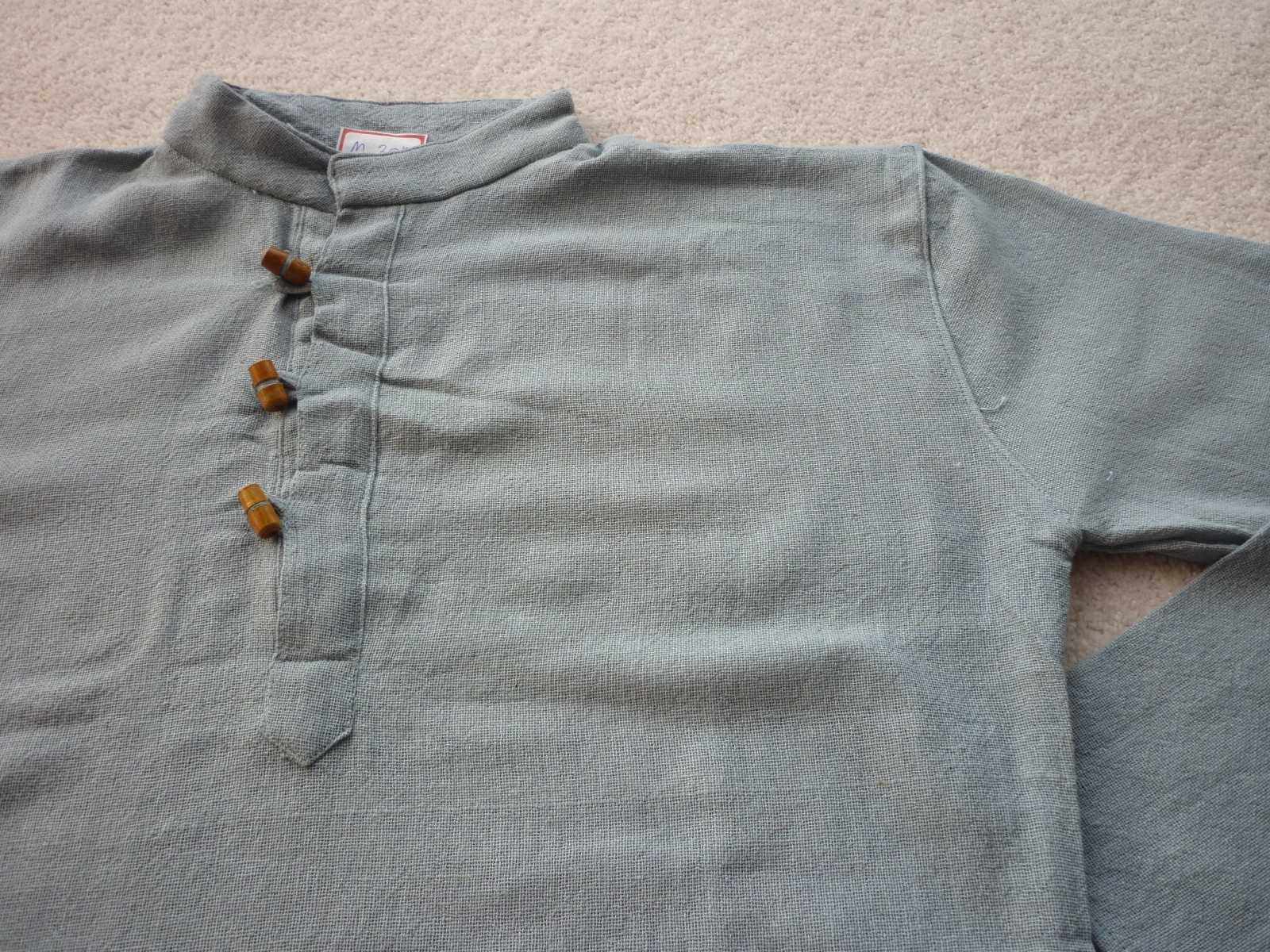 Indian Khadi shirts in a cool light blue. Available in small (28") medium (30") and large (32") chest sizes.