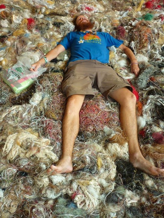 walked into an installation where the whole floor was ankle deep in fabric cuttings. Children and adults alike were all lying and sitting in this comfortable environment. It was the perfect urban place to come after you have 'shopped 'to come and 'drop'. We hung out in there sometime and learnt that the concept was that there were 5 gold chains hidden in the fabric installation and if you were lucky enough to find one, then you could keep it. We didn't, but were happy just to chill for a little while. The rest of the floors exhibition dealt with issues such and life and death as well as the present moment. To embrace peoples creative side a whole area was designated for people to come and draw, read, write poetry or however they felt like being creative. We thought this was a fantastic idea to have this kind of space in a hectic urban city.