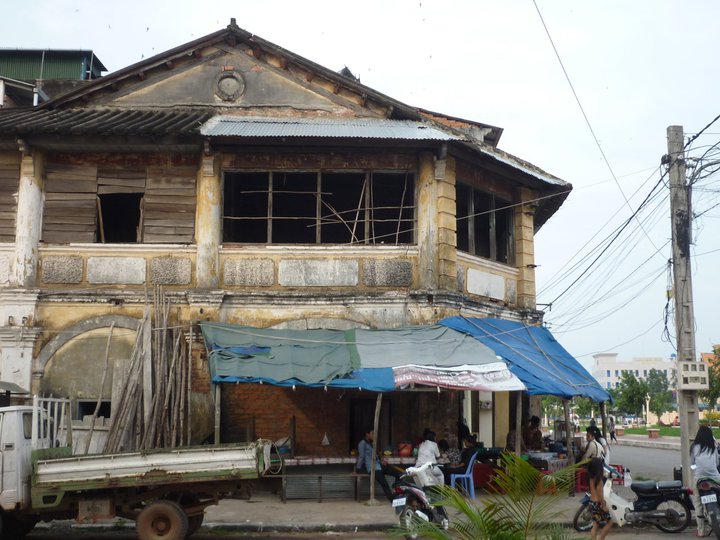 Although they were colonial I wouldn't go as far as saying they were particularly beautiful though. The main area where a few cafes and restaurants dominated the street was a wide road with a bit of greenery which was called the 'park'. Also in the middle of this wide road was the old market which is now in ruins; apparently at one point it had been used as a club, now it wasn't used as anything although I think there were plans to renovate it and bring it back to life as a market. There seemed to be a large western influence as the cafes almost all seemed to be owned by foreigners, however there was a relaxed and bohemian edge to the place which made it a nice town to hang out in for a few days. Personally it was not exciting enough to stay for more than a few days. Other people who had been to Kampot in the past had recommended us a hostel on the outskirts of town where they have bungalows and hammock and they just relaxed on the river and drank beer for a week. This would have been nice perhaps, if we had not just been doing that for a week in Sihanoukville! We were eager to experience Cambodian culture, get off the beaten track and loose the tourists.