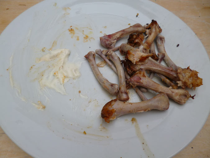 The more cunning of you will notice that there are drumstick in the photo, as well as wings that appear later in the picture series. This is because we eat enough and it is summer time so the photos are of two sittings. The first time it became too dark on the beach to get the final shots. Wings have more fat and so are ideal for the hot sauce. You also get more kick. However, again if you have a faint hearted audience then the hot drumsticks and yoghurt addition to the sauce tones things down a bit...