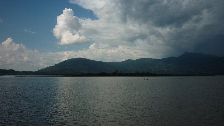 We sat with a view of the beautiful lake and enjoyed a great meal of garlic and spinach with rice and the local favourite of fried noodles with pork and vegetables. We couldn't believe our luck that we had come all this way and found such an idyllic setting more or less to ourselves. The resort also had a pool, it hadn't been cleaned for some time and it appeared that all the bungalows were not occupied, we had clearly come in off season. We enjoyed a cold beer on some deckchairs enjoying the view of the lake with the backdrop on the hills we had driven over. Storm clouds developed fast and we watched them trying to predict which way they were moving. It was so good to sit there and watch the large thunder clouds develop and then downpour on the mountains. Luckily the rain never reached us on this occasion and we were safe to start making our way back to Buon Ma Thuot.