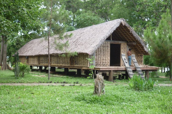 Sometimes with a corrugated steel roof, but more and more often as we drove into the rural parts, with woven leaf roofs.
