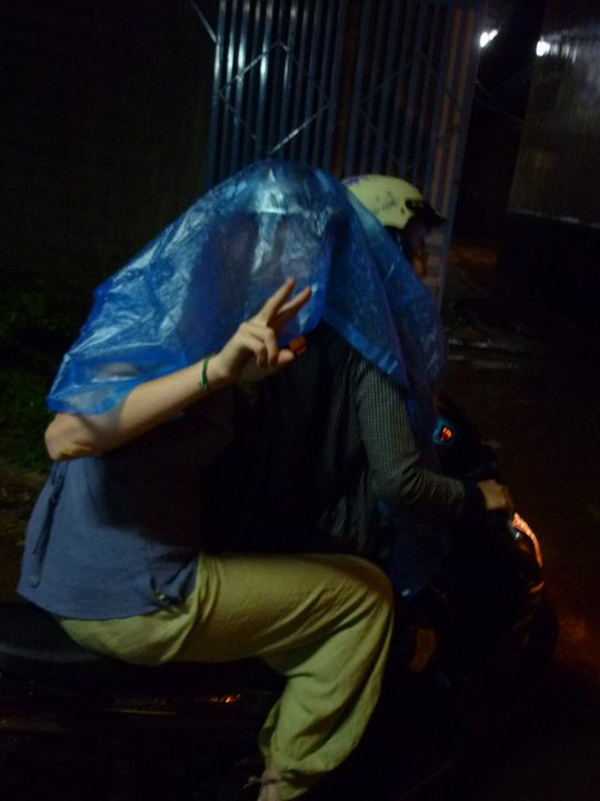 Before we said goodbye to Zom and Zim, Zim wanted to show us were she lived. She was a university tutor and lived in student halls, so instead of just going back to town they took us to the opposite side of the town to a much more run down area. Large black clouds followed us and looked ever more impending. Within 5 minutes of reaching Zims place the rain and thunder began. On arrival we were greeted by shy giggling young students, probably between 17-19yrs old. The curious faces soon lost their shyness and sat around trying to practice their English. They were all so nice, it was fun finding these people to talk to and see how real Vietnamese live and get on with their lives in a non-tourist place. We sat around eating green mango for a while and then finally decided that the rain was not going to let up.