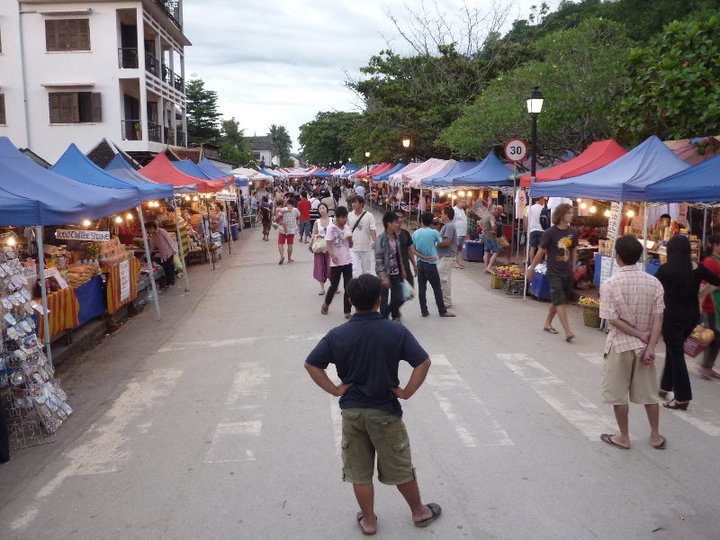 That evening Jan was expecting to meet his predessesor, so we agreed to meet at the night market and go for a meal. A cool shower and a relax on the balcony at our place watching the evening activities of the locals take place. Our hostel, it turned out was where Lao people stayed, rather than backpackers. So we were the only 'falang' staying there. People were friendly and a bit curious of us. Since we had picked up a fair bit of Lao vocab in Hatsa, we enjoyed surprising the other guests by speaking their language. They would respond with a wide and happy smile and become less shy and actually start to chat to us like people rather than 'falang'. Our experience of chilling on the balcony was becoming quite a cultural experience in its own right.