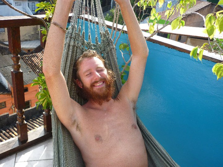 We caught an hour public bus ride to town, getting a good taste of the beautiful beaches the region had to offer enroute to a prebooked hostel in Pelrhino, the old area of the city. Walking in search of the hostel we pass through cobbled roads, colourful colonial buildings with interesting graffiti. The combination of old, new, urban, vibrant and culturally exciting is what both Al and I love. We arrive at the hostel Nega Maluca with the catch phrase, ´for travellers by travllers´. Over the next few days it really does prove to be just what we need to enjoy Salvador to the max. For the time being, on arrival a hammock on the veranda with a beer will do. And.....relax.....