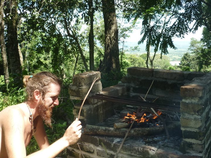 We walked past a beautiful basic house perched on the top overlooking the forest and river. We agreed we would happily live their with the 2 dogs, lime trees vegetable garden and chickens and now have the outlook to do so. At the very top we made a fire to BBQ some meat we had been given, plus some bean burgers we had made extra for easy meals like these.